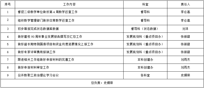 上一条:发展规划与教学质量管理处2025-2026学年第一学期第5周工作计划表(10月6日-10月10日)