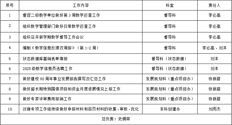 下一条:发展规划与教学质量管理处2025-2026学年第一学期第2周工作计划表(9月15日-9月19日)