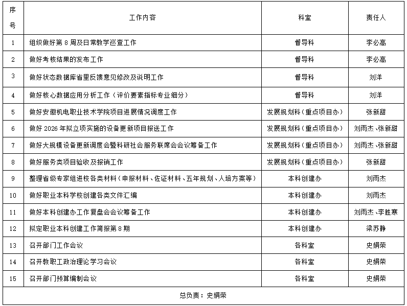 下一条:发展规划与教学质量管理处2025-2026学年第一学期第7周工作计划表(10月20日-10月24日)