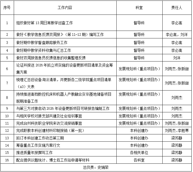 下一条:发展规划与教学质量管理处2025-2026学年第一学期第12周工作计划表(11月24日-11月28日)