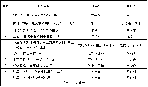 下一条:发展规划与教学质量管理处2025-2026学年第一学期第16周工作计划表(12月22日-12月26日)