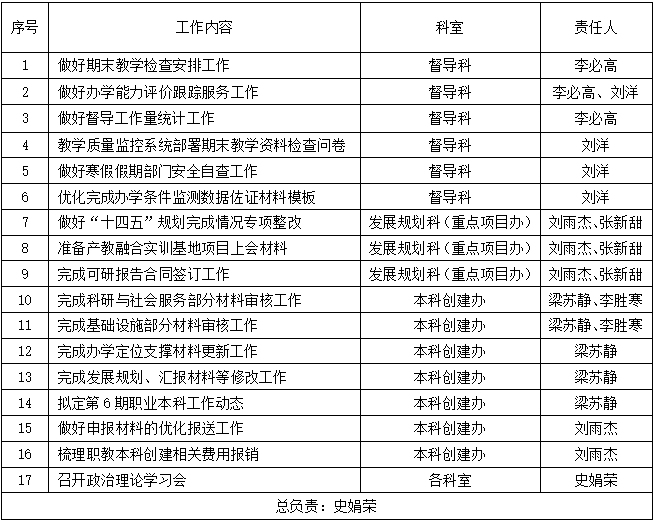 下一条:发展规划与教学质量管理处2025-2026学年第一学期第19周工作计划表(1月12日-1月16日)