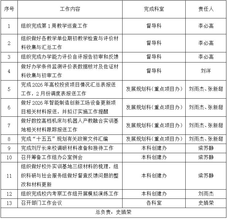 上一条:发展规划与教学质量管理处2025-2026学年第二学期第2周工作计划(3.9-3.13)